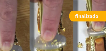 En este taller vas a aprender el proceso completo del dorado a la hoja para lograr superficies luminosas y refinadas que evocan el esplendor del oro.